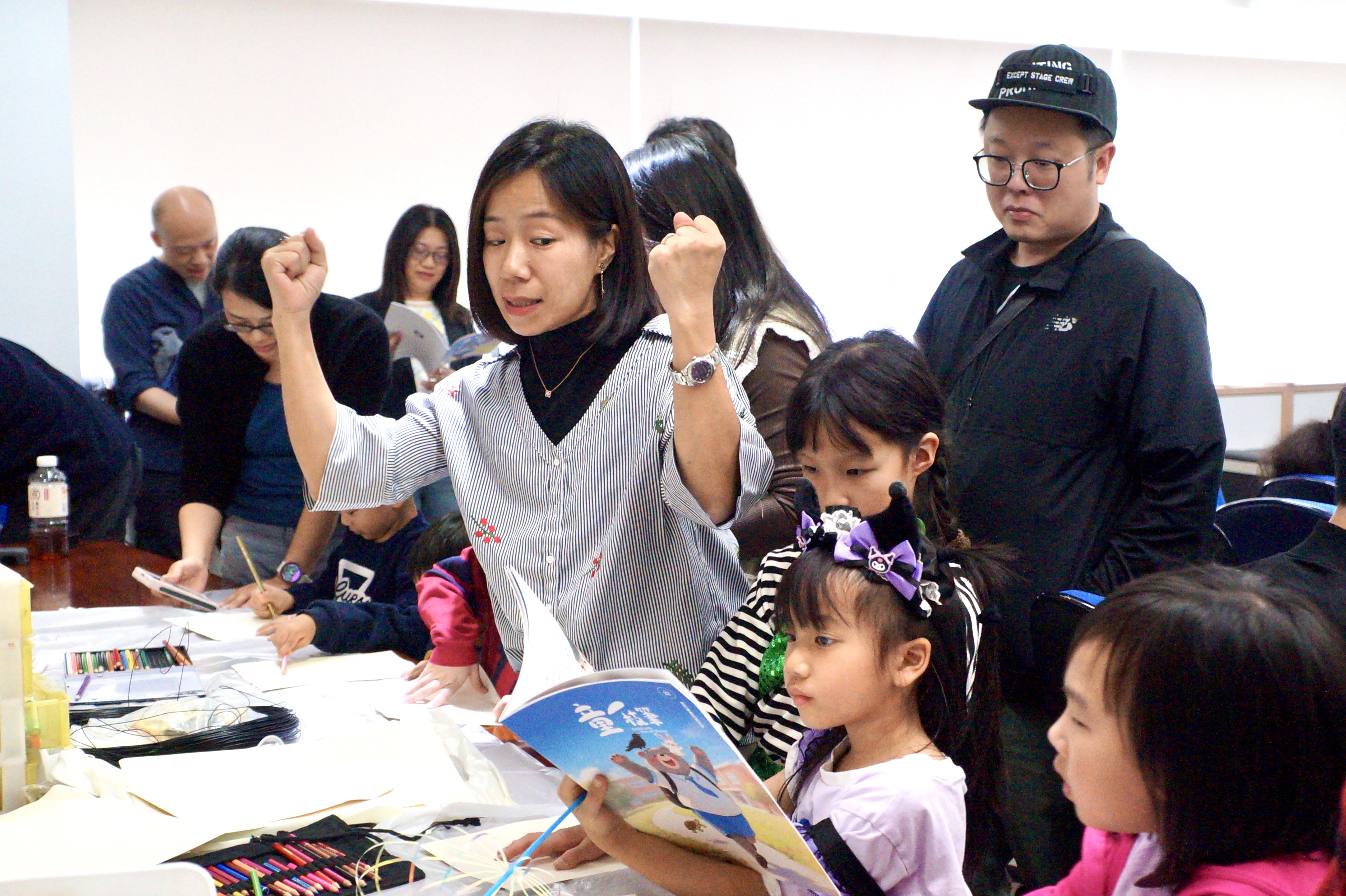 在「童一枝筆故事會」中,譚麗梅充滿活力地演繹了本期優秀作品《如果我有超能力》及內地科幻繪本《通天洞》,引領現場觀眾進入奇妙的文學世界。隨後,在場的小朋友向兩位作者獻花,將氣氛推向高潮。編輯李俊文主持了證書儀式,並邀請作者簡介作品。