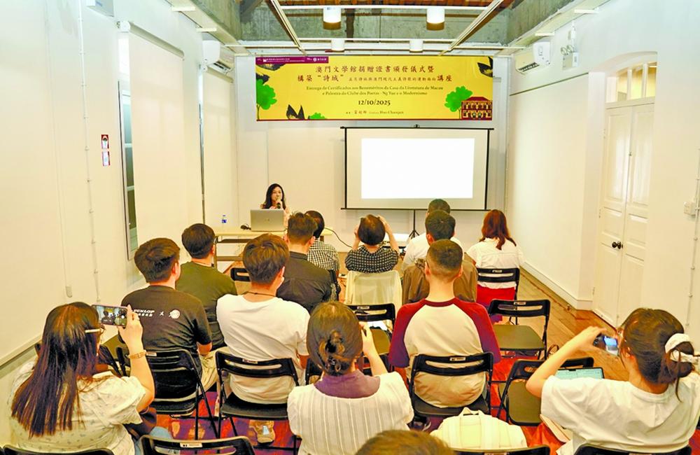 此外,澳科大国际学院讲师、笔会青协会员霍超群举行以“澳门文学形象”为引的讲座,梳理了澳门文坛自一九八〇年以来为建构文学身份所开展的既往工作。并聚焦五月诗社,剖析其在多元文化语境中融合诗学主张、筑就“诗城”理想的过程,探讨社员在创作鼓励与先锋追求间的协商与失衡,并从写作者、报章媒体、文化社团、高校四个维度,思考推动澳门文学发展的具体进路。